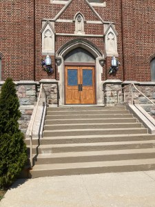 Below is a recent picture of the church entrance in the small town of Fowler where I grew up. If you’ve read the book, you may recognize the cement stairs rising up to the oak doors as mentioned in the book as well as the “church steeple rising high above them” in the above photo.